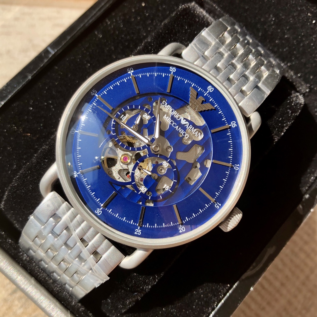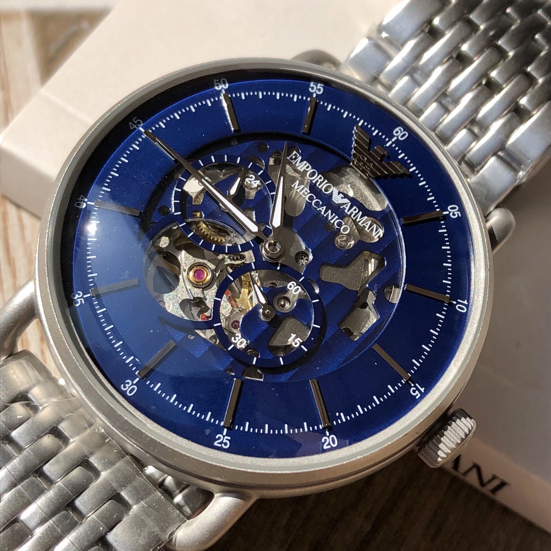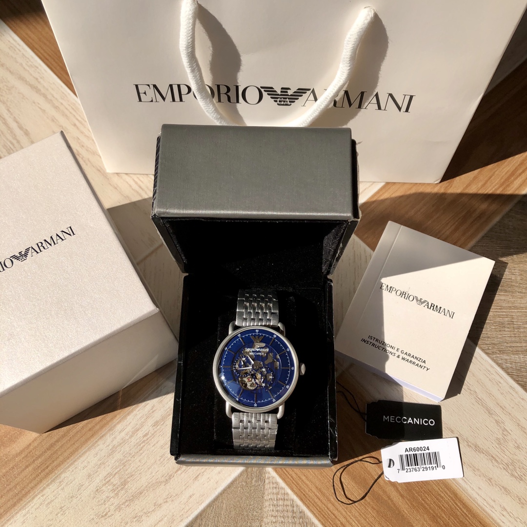 阿玛尼(Armani)全自动机械男表,专柜最新款!AR60024,透底时尚商务款,高清晰度直视机芯精密构造及动态运转,掌握时间的律动,不锈钢表带,双按蝴蝶扣,为舒适佩戴加分,生活防水30m,配专柜全套包装!