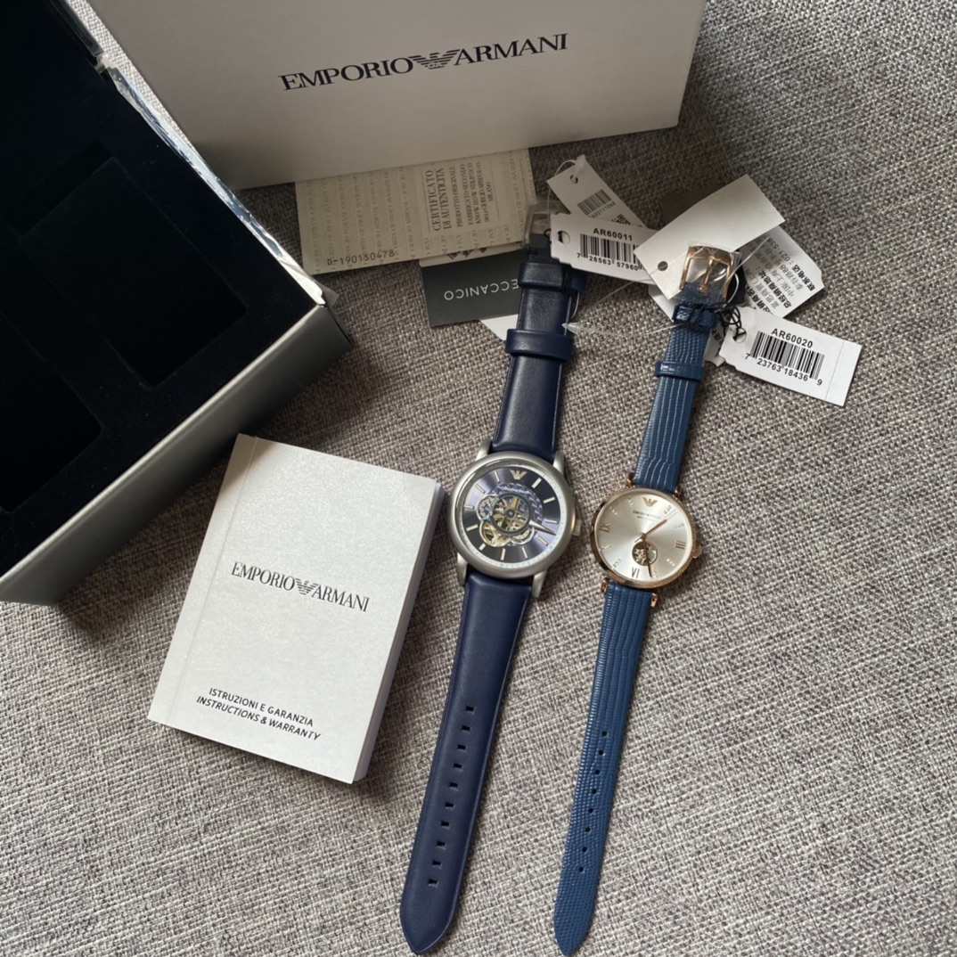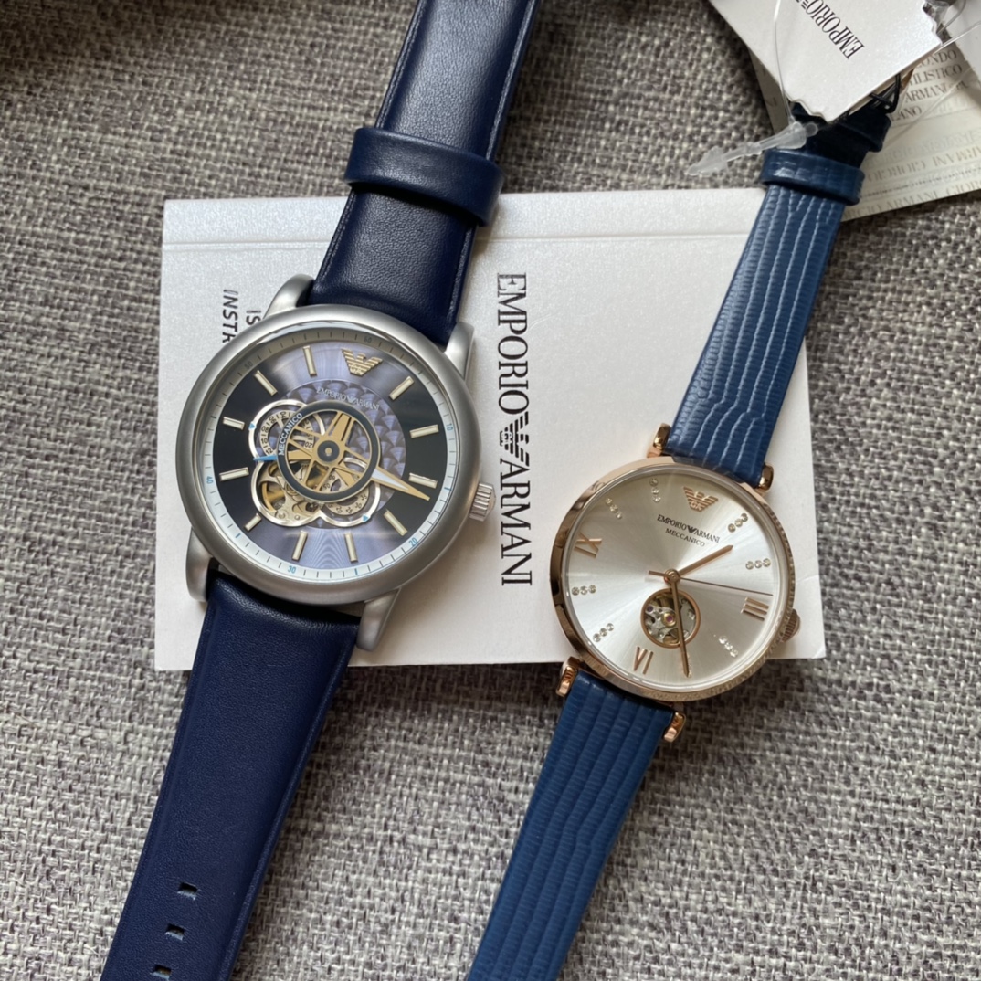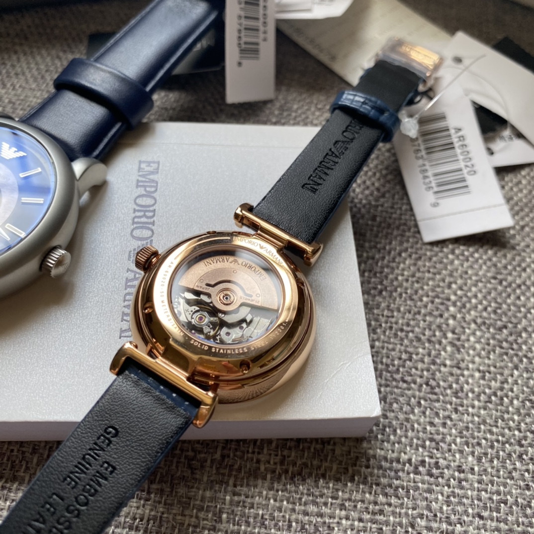 男女款情侣机械,原单阿玛尼男表女表AR60011+60020 欧美经典 时尚休闲 潮流镂空设计 富有现代艺术性的华美镂空 进口牛皮表带 针扣 矿物质水晶镜面 50米防水 全自动机械男表 43mm*12mm 女款表盘28mm;